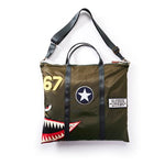 The Curtiss P-40 served around the globe as a fighter aircraft in the Second World War and was easily recognized by the shark mouth that was first painted on its nose by the Flying Tigers. The new P40 Helmet Bag is a sleek, all-purpose satchel that’s light enough to travel anywhere. Perfect for carrying your flying kit, laptop, wallet and map. Comes with an adjustable shoulder strap. Imported.