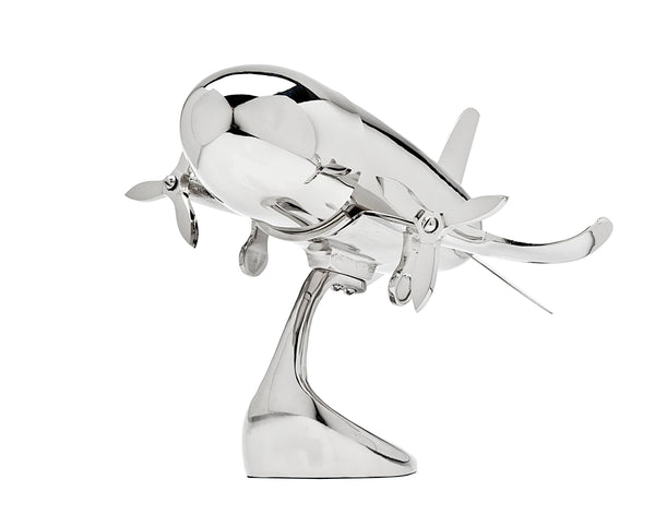 This exclusive Airplane Cocktail Shaker stands out with its sleek airplane-inspired shape and luxurious details. This sophisticated cocktail shaker is an ideal addition to your barware collection, perfect for home bartenders and professional mixologists. Impress your guests with a touch of aviation-inspired glamour. Semi-Handmade India Material: Stainless Steel & Nickel-Plated Color: Stainless Overall Dimensions 10.50"L x 12.0"W x 5.0"H 24oz General Care Hand-Wash Recommended