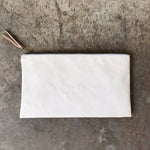 Our popular ESCAPE Travel Clutch is back and better than ever! Perfect for holding all your daily necessities while on the go. From makeup to pens and pencils, this zip top clutch will become your new favorite. Made with ultra durable 18oz natural canvas, sturdy brass zipper, and veg tan leather pull. Measures 12" wide, 7" tall. Proudly made in the USA.