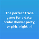 Featuring 50 questions about love and romance drawn from history, literature, science, and pop culture, this sweet little trivia game is perfect for a cozy, super fun date with a sweetheart, a bridal shower party, or a girls' night in.