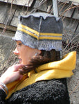 100% wool hat in gray with yellow and gray/white mixed print accents. One size fits most. Sold out.