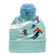 Bring alpine adventure into your winter wardrobe with this Skiing Pattern Knit Beanie with Pom Pom Winter Hat. The design captures dynamic skier silhouettes racing down snowy slopes, set against a cool blue background that evokes the excitement of mountain resorts. The fluffy pom pom on top and ribbed cuff add both warmth and a classic winter touch.