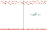 Box of 10 greeting cards and envelopes, embellished with red foil. Art by Magrikie. "Merry Christmas And Happy New Year"
