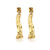 THEA DROP EARRING IN GOLD Gently hammered swirling dangle on a square stud in antique gold finish. Discreet and elegant. PRODUCT DETAILS Materials: 24 kt gold plated pewter. Measurements: 1.5" length. Earring closure: Post back. Earring weight: 0.13 oz.(light weight)
