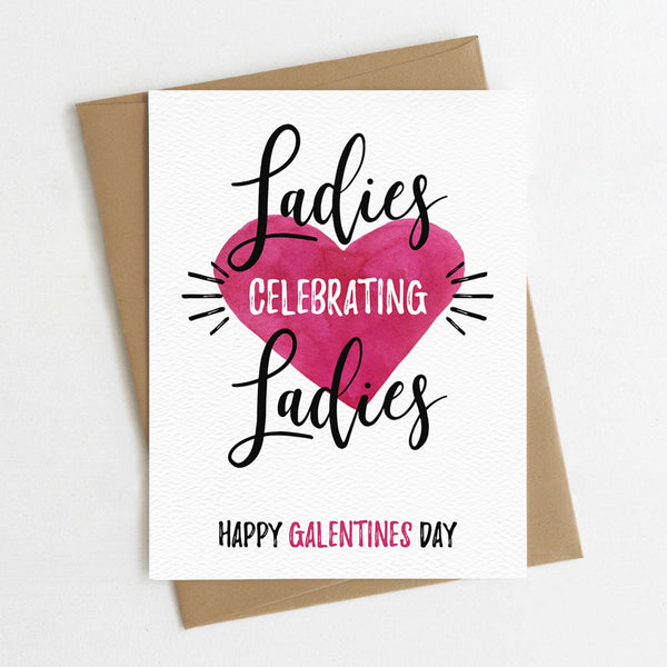 This Galentine's Day themed card is a fun and eco-friendly way to say Happy Valentine's Day to your girlfriends. Each handmade card is printed on recycled paper that has a luxurious and uniquely textured feel. Card Says "Ladies Celebrating Ladies Happy Galentine's Day"