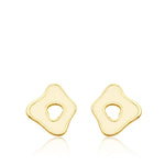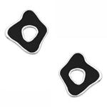 irregular black enamel cut-out stud earrings. Materials: 24-kt gold-plated pewter. Nickel free. Measurements: 5/8"D Earring closure: Post back