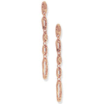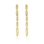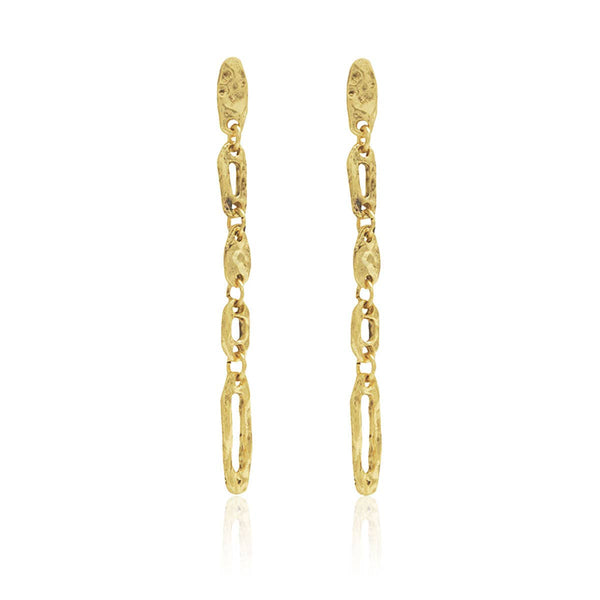 Long draped chain pendant earring with textured finish PRODUCT DETAILS: Materials: Pewter plated with 24 kt gold / Sterling silver / Rose gold. Measurements: 3" long; Earring closure: Post back