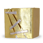 BOWIE SQUARE CUFF Square architectural mixed metal cuff showcasing an art deco design, an intricate gold and silver balance, and just the right amount of brushed texture. Our imaginative piece of art is slightly adjustable to fit your wrists perfectly. Its square design is so cool, all of your friends will be raving about it and secretly wishing they were the first to discover it... *Cuff is slightly adjustable to fit most. * PRODUCT DETAILS Materials: Pewter casting with 24 kt gold plating / Sterling silver plating. Measurements: 2" wide. MSRP: $78