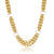 Collar necklace composed of two layers of curb chains linked together by a series of large ornamented round links. The mixed metals make this versatile piece a go-to item in any jewelry box! PRODUCT DETAILS Materials: Pewter casting with 24 kt gold plating / Sterling silver plating / Rose gold plating. Measurements: 17" long + 2" ext