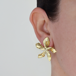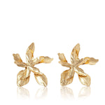 Large flower stud PRODUCT DETAILS Materials: Pewter alloy base plated with 24-kt gold / sterling silver. Measurements: 1.5" wide Earring closure: Post back Earring weight: 0.16 oz.