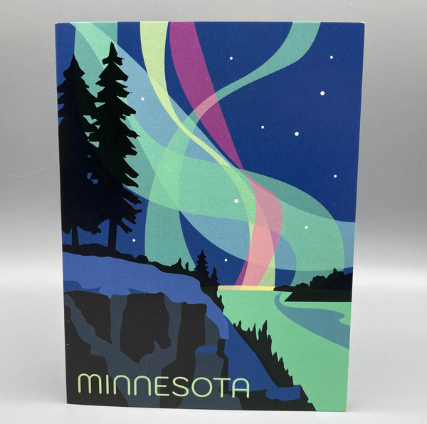 This greeting card features Cindy Lindgren's dancing Northern Lights (aurora borealis) on a clear starry night: magical to witness!