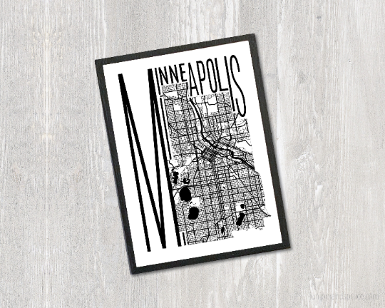 Art incorporating a map of the city of Minneapolis on a fun little magnet.