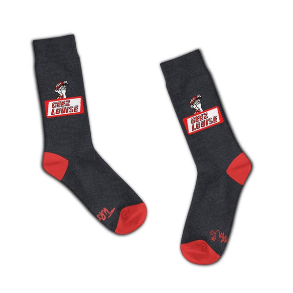 Sometimes words just don’t cut it. And that’s where these socks play a major role. The Geez Louise crew socks capture that universal moment of disbelief, complete with a cartoon character doing the classic facepalm. Beneath him, the bold text says it all: “Geez Louise.” No need for explanations. Your feet are already doing the talking. Knit in a dark gray base with a pop of red on the heel and toe, these socks have just the right amount of flair without shouting for attention. They’re made from a comfy blend of 70% cotton, 28% polyester, and 2% elastic, which means they’re soft, breathable, and stretchy enough to handle everything from lounging on the couch to dragging yourself through another Monday. Unisex and sized to fit most (Men 6–11, Women 7.5–12), they’re a one-size solution for anyone who’s ever muttered “Geez Louise” under their breath. Gift them, wear them, or save them for those days when eye-rolls alone aren’t enough.