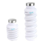 Meet the original collapsible bottle. Our patented spiral design allows the bottle to be compressed to take up less space, which also reduces its carbon footprint during shipping. 100% Plastic Free (BPA Free & Non-Toxic) Lightweight & Compact Wide Mouth for Ice Cubes Taste & Odor Free Leakproof & Shockproof Temperature Resistant up to 400F Dishwasher Safe Materials: 100% Food-Grade Silicone (Bottle), 18/8 stainless steel (Cap) Collapsed Height: 4.8in Collapsed Capacity: 8 fl oz Expanded Height: 8.4in Expanded Capacity: 20 fl oz