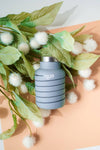 Meet the original collapsible bottle. Our patented spiral design allows the bottle to be compressed to take up less space, which also reduces its carbon footprint during shipping. 100% Plastic Free (BPA Free & Non-Toxic) Lightweight & Compact Wide Mouth for Ice Cubes Taste & Odor Free Leakproof & Shockproof Temperature Resistant up to 400F Dishwasher Safe Materials: 100% Food-Grade Silicone (Bottle), 18/8 stainless steel (Cap) Collapsed Height: 4.8in Collapsed Capacity: 8 fl oz Expanded Height: 8.4in Expanded Capacity: 20 fl oz