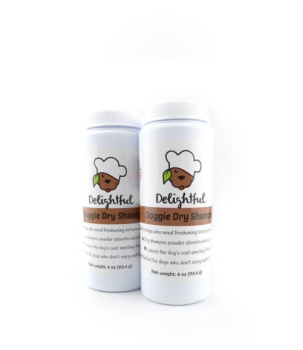 Our dry shampoo leaves the dog smelling fresh and clean WITHOUT a bath. It's great for freshening up the coat in between baths or for dogs that hate water baths. Made in the USA with dog safe ingredients like arrowroot powder and colloidal oatmeal. Enjoy the clean fresh scent with very little work, just sprinkle on the dogs coat and brush in, that's it! Ingredients: arrowroot powder, bentonite clay, colloidal oatmeal, and lavender powder. Comes in a 4oz. convenient shaker bottle.