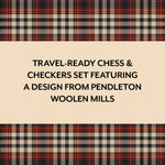 An exciting addition to the popular Pendleton game line: a Chess & Checkers set in the cozy and classic Red Black Check pattern.