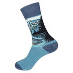 Gather 'round the campfire with cozy feet! Mid-calf Crew Sock • Unisex, One Size Fits Most: Men 6 – 11 & Women 7.5 – 12 Made of 70% Cotton, 28% Polyester, 2% Elastic