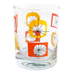 These classic 14 ounce old fashioned cocktail glasses feature the original destination PSP midcentury-inspired atomic designs in either blue/green or orange/yellow. Each glass measures 4 1/2 inches high by 3 3/8 inches in diameter and holds 14 oz. Made and decorated in USA. Hand wash recommended.