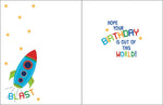 Greeting card with Envelope Have a Birthday Blast Hope your birthday is out of this world! Embellished with foil Folded size: 4.25" x 5.5" (A2). Proudly made in the U.S.A. *FREE Greeting Card Display Spinner with Purchase. See Product SKU 009-0202 (72 Pockets) Gina B Designs is a well-established designer of greeting cards, stationery and gifts, inspired by our love of art. Our products are made in the USA and include all occasion greeting cards, boxed notes, gift enclosures, desk calendars, notepads, planner notepads, invitations, kids thank you postcards, recipe cards, Valentine’s Day, Christmas and Spring seasonal (Easter, Mother's Day, Father's Day and Grad) cards. Our brands include “Gina B” and "Simple Blessings" product line with scripture. We ship quickly and are very proud of our outstanding customer service. :)