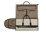 The Capri 2-in-1 Garment and Duffel Bag is designed with the business traveler in mind, stylish enough for overnights that include some leisure time. Made from a lightweight canvas and accented with vegan leather. Features a adjustable shoulder strap; outer zipper compartment for quick access and extra interior pockets for quick access of your phone, wallet and keys.