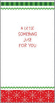 Tri-fold greeting card with envelope. Inside tabs to secure money or gift card, embellished with glitter. "A little something just for you"