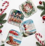 Our coasters are a perfect compliment to any kitchen or dining space. Our coasters are 4"x4" and are 1/4" thick with a non-skid natural rubber backing. They are easy to clean with soap and water, and the open cell fabric on the top will not blur or run when wet. Proudly deigned and printed in the USA.