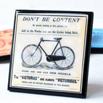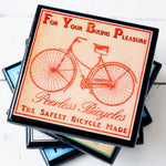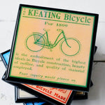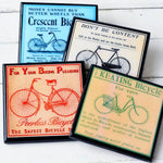 Let the cyclist in your life set their post-ride drink down in style with this set of four wood coasters that feature vintage bicycle ads.