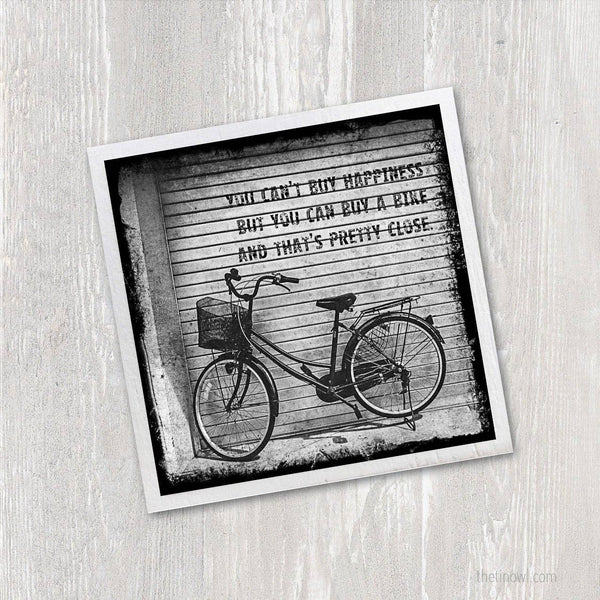 A handmade art magnet with a photograph of a vintage bike with the words: "You can't buy happiness but you can buy a bike, and that's pretty close." I make each wooden magnet by hand in my Minneapolis studio. DETAILS: • Magnet measures 2.5" x 2.5", 1/4" deep • Super strong neodymium magnet - it actually holds stuff up • I make all magnets by hand in my Minneapolis studio - first cutting, sanding, and painting the wood, then mounting my original artwork and sealing with a water-resistant varnish • Magnet is coated in a clear varnish - subtle brush streaks will show ---- *Due to monitor variations actual colors may vary. All images copyright © 2022 Juniper & Spruce. All rights reserved. Purchase does not transfer copyright. No reproduction of any kind without prior written consent.