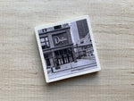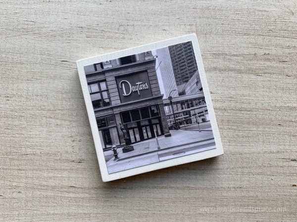 A photograph of the Mary Tyler Moore Statue in front of Dayton's in Minneapolis on a fun little magnet.