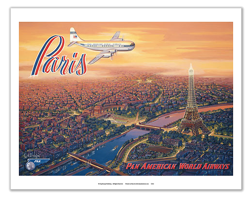 Pan American World Airways Over Paris (Eiffel Tower & Boeing 377 Stratocruiser, Kerne Erickson) 12x18 Master Art Print PRTBCS42