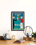 A 1960s travel poster promoting travel to Paris via Pan American Airways. This is a high-quality print from the original vintage poster. Photographed in high-resolution using our signature capture process to retain all visual marks and tears as found on the original copy. Made in NYC. Printed in full color on matte smooth art paper. Print size is 12×18″, available framed or unframed. Our small prints are printed on digital press with archival matte off-white paper are displayed flat in crystal-clear sleeve and a rigid acid-free backing. Our poster frames are made of solid pine wood with a matte black finish. Featuring shatter-free thick plexiglass and a sawtooth hanger for easy hanging. Frames ship protected in heavy-duty bubble wrap.