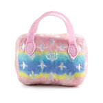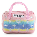 Pink Ombre Chewy Vuiton Bag We present to you this season’s mutt-have accessory for your doggie darlings: the Chewy Vuiton Bag toy! Its pink handles and Ombre exterior barks to the world “I have taste and I have class, even though I occasionally drink from the toilet”. Your pup princess will feel all the more spoiled as they take the plush exterior for a chew and discover the delightful squeaker inside! The Pink Ombre Chewy Vuiton Bag is available in Large and Small sizes. Large Measures 6” x 5.5” x 4” Small Measures 4.5” x 5” x 3” This product is individually packaged in a polybag. All Haute Diggity Dog Products include a hangtag that displays the HDD logo and UPC barcode. Imported