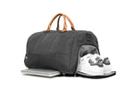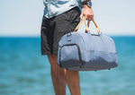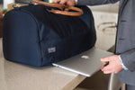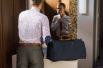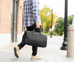Dress up, dress down. Weekday or weekend. The PKG Elements Bishop II Bishop 42L duffle bag is a timeless, versatile weekday and overnight/weekend travel bag for any occasion. Made from a recycled, weather-resistant, 600D polyester outer fabric and a 210D satin polyester inner fabric made from recycled plastic water bottles. With a dedicated shoe/laundry compartment, a padded compartment for your laptop or files, and integrated organization keep you organized on the go, this duffel is the perfect day companion or overnight travel bag with 42L of volume.