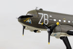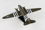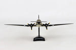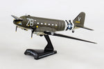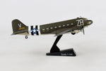 This Die-cast metal airplane model comes in 1:144 scale with plastic stand and is approximately 5 ½ inches long with a 7 ¾ inch wingspan. The C-47 Skytrain developed from the Douglas DC-3 which was designed for commercial passenger service in the early 1930's. Entering service in 1935, the DC-3 was quickly adapted for military transport service and designated as the C-47 Skytrain. World War II saw high demand for the reliable C-47, with over 10,000 produced. The C-47's played a key role on D-Day, dropping over 50,000 paratroopers during the Allied invasion of Normandy in Operation Overlord, June of 1944.