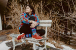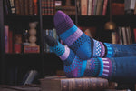 A long-time customer favorite that pairs perfectly with jeans, suits, or just about anything. Colors in this sock: turquoise, purple, black, lilac, royal blue. We are proud that all of our socks are made in the USA with recycled cotton yarn.