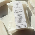 Our All-Natural Stain Stick is simple, yet effective! Simply wet the stained area on your clothing with water. Rub the stain stick over the area generously. Wash clothing immediately or toss in the laundry pile for later. This is a great option for people with sensitive skin and for those who are avoiding added chemicals and fragrances. This is the perfect complimentary product to our All-Natural Laundry Detergent! Each stick is approx. 3.15 oz.