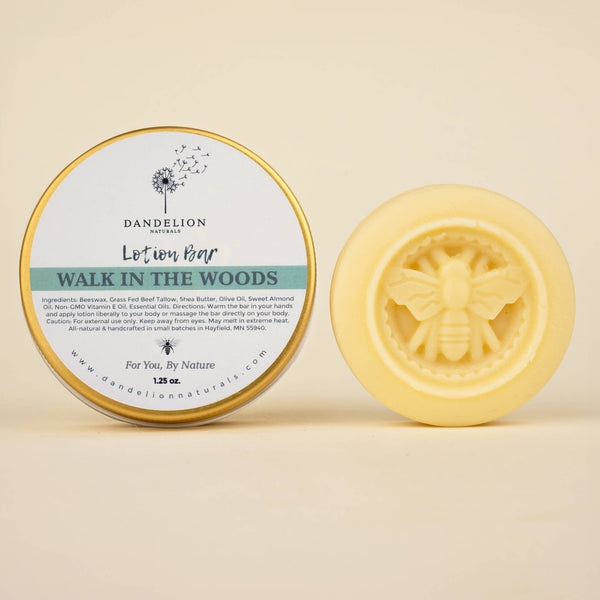 This Lotion Bar pairs beautifully with our top selling Walk In The Woods Bar Soap. Great duo for a cute gift set.