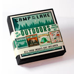 Each coaster set comes in a decorative wrapper (pictured) - for an easy, affordable ready-to-go gift for that camping enthusiast!